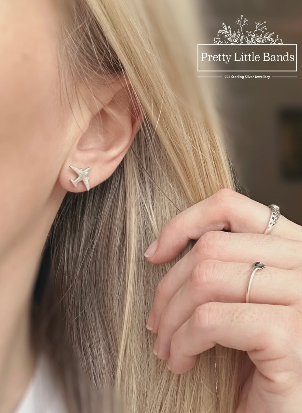 Take off with style with these airplane stud earrings! Made of 925 sterling silver with a brushed finish, these cute earrings are a must-have for any travel lover. Boarding a flight or just daydreaming of your next adventure, these earrings will add a playful touch to any outfit. Bon voyage!