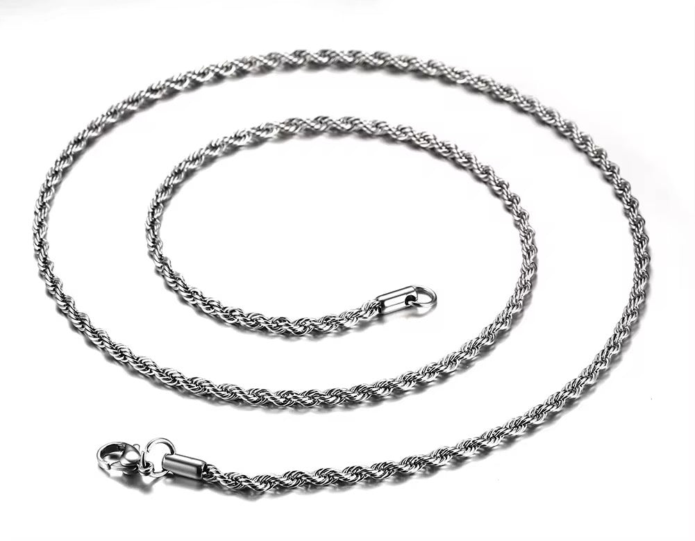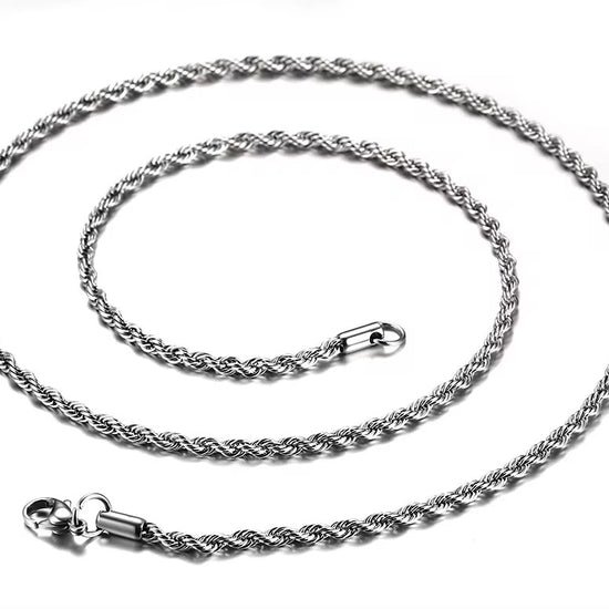 Our Cable Chain necklaces feature a twisted double rope chain. This timeless style is perfect for layering or wearing alone as a statement piece.
