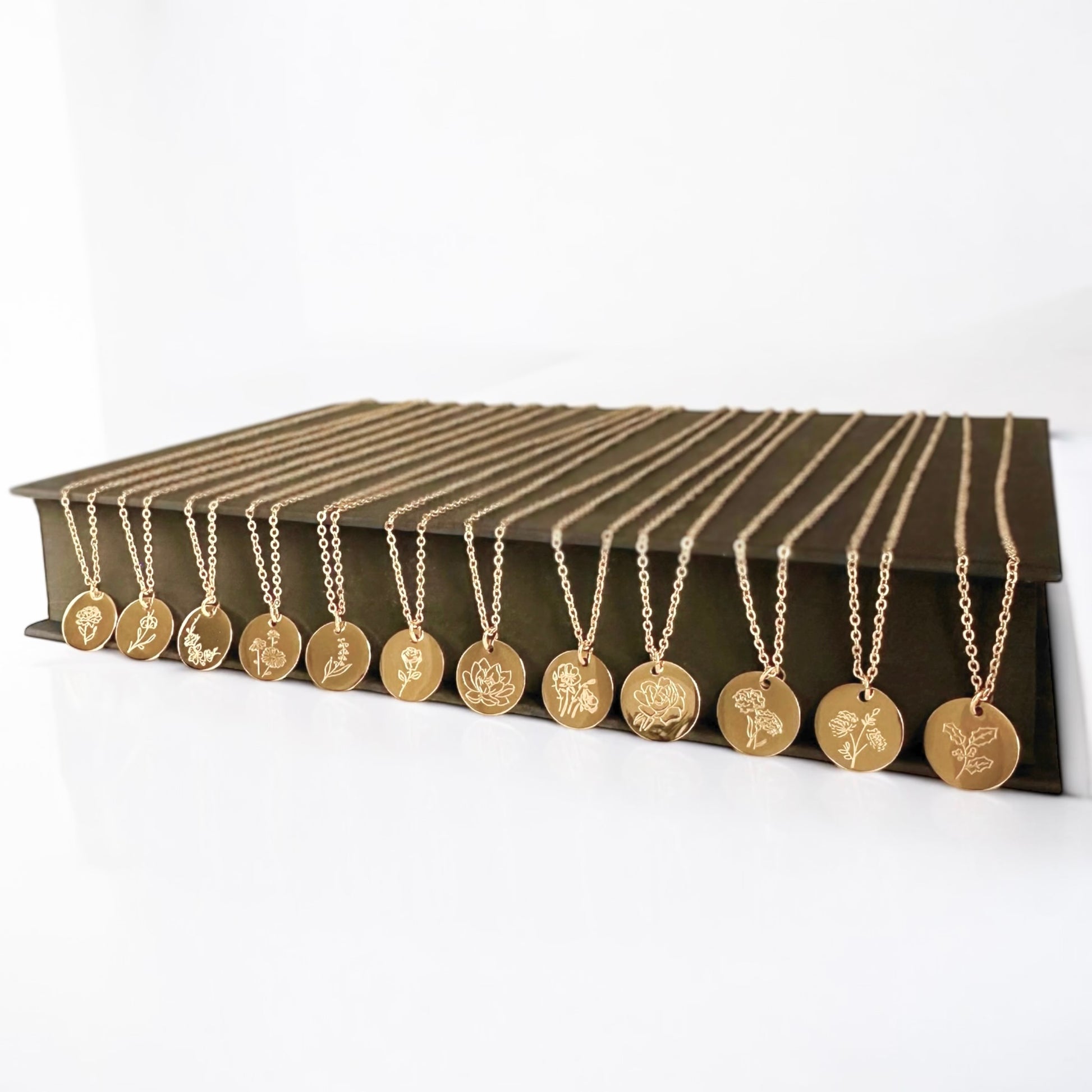 Birth Flower Necklaces, Round | 18k Gold Fill