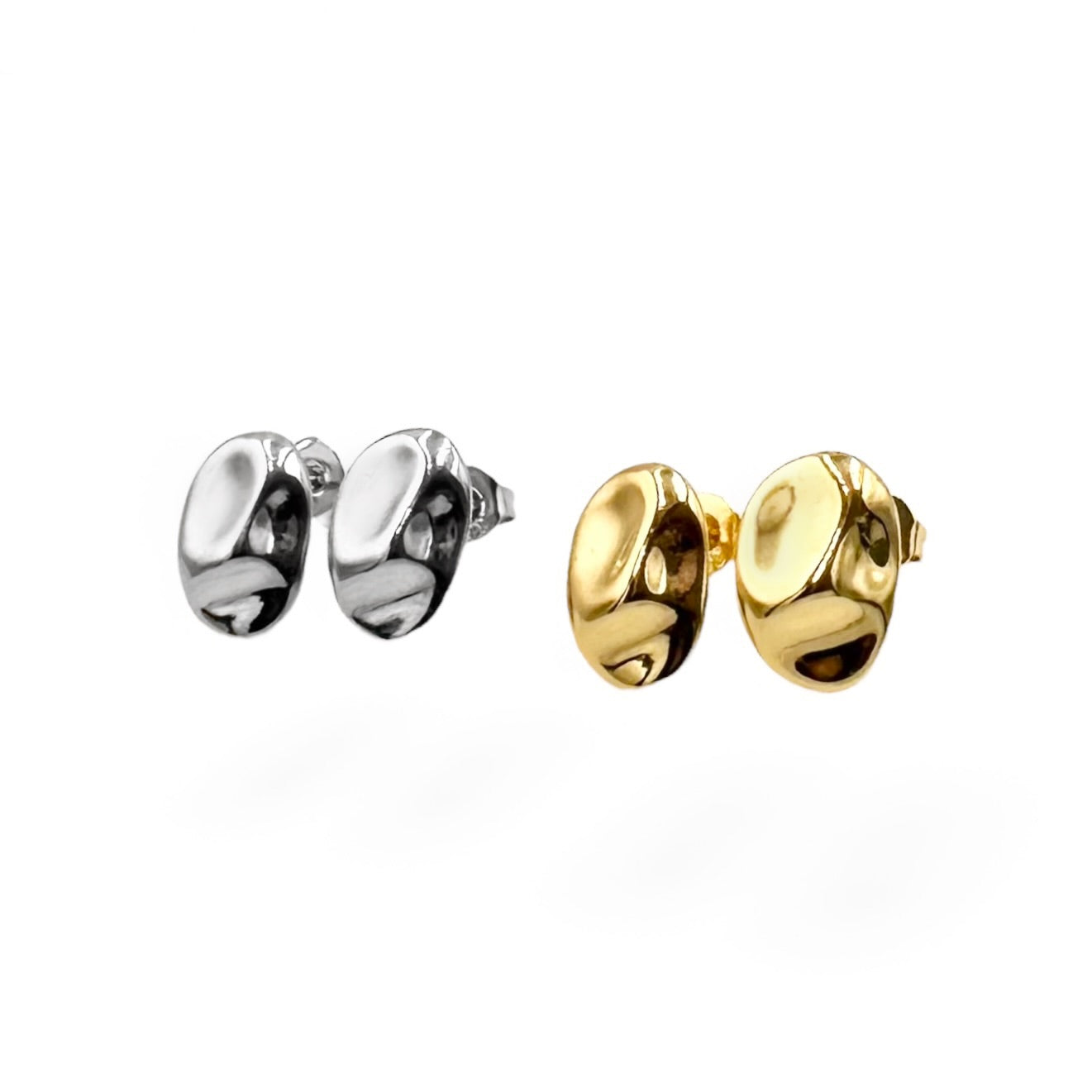 Hammered Oval Stud Earrings | 925 Sterling Silver