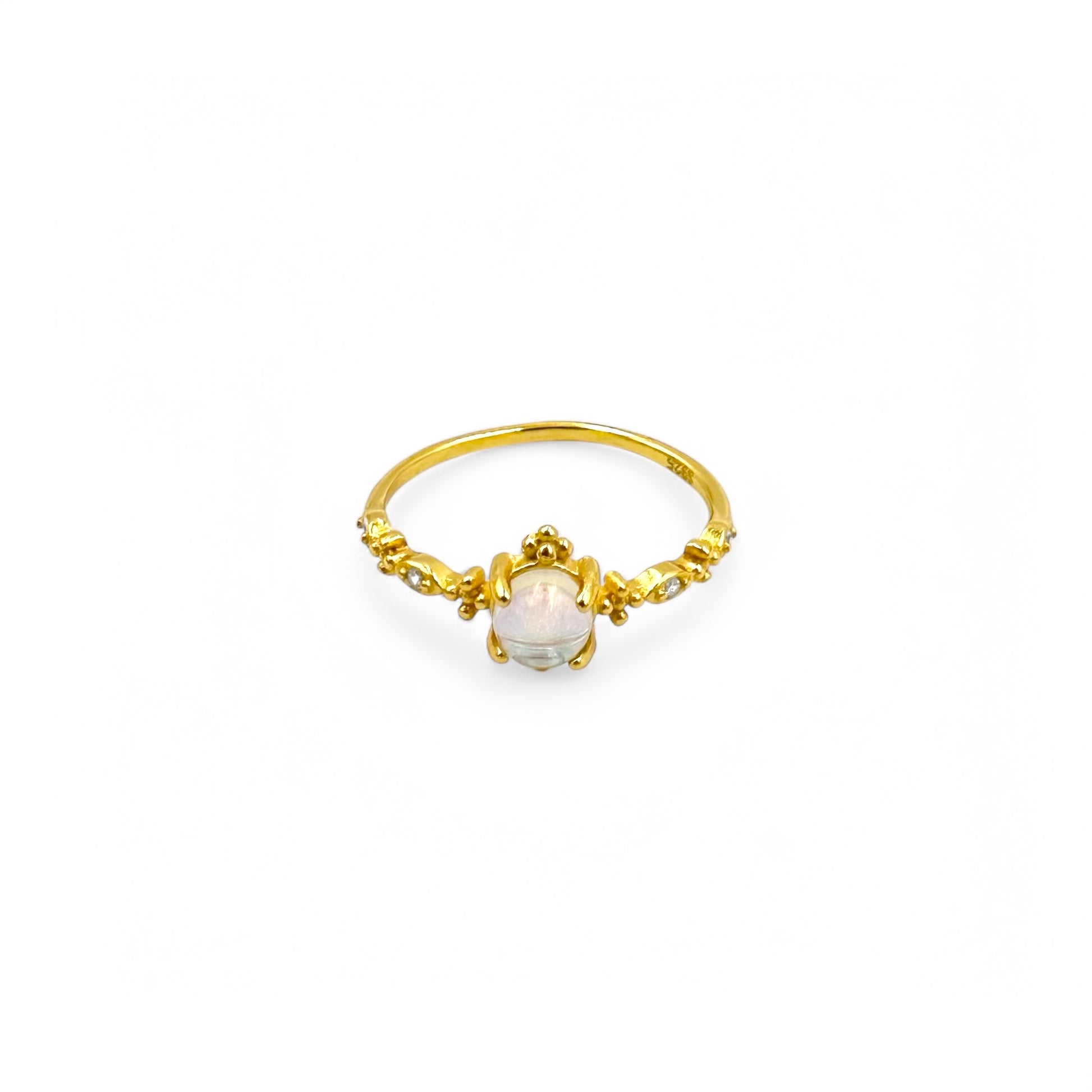 Moonstone Crystal Ball Ring | 14K Gold | Size 6-10
