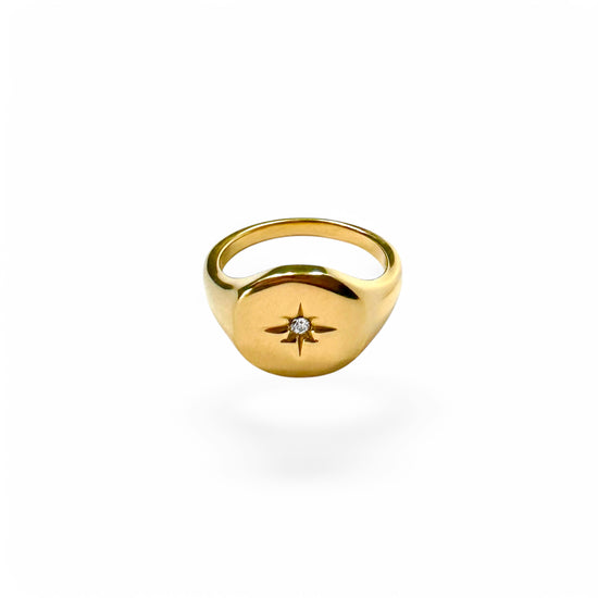 Crystal Star Signet Ring | 18k Gold | Size 6, 7, 8