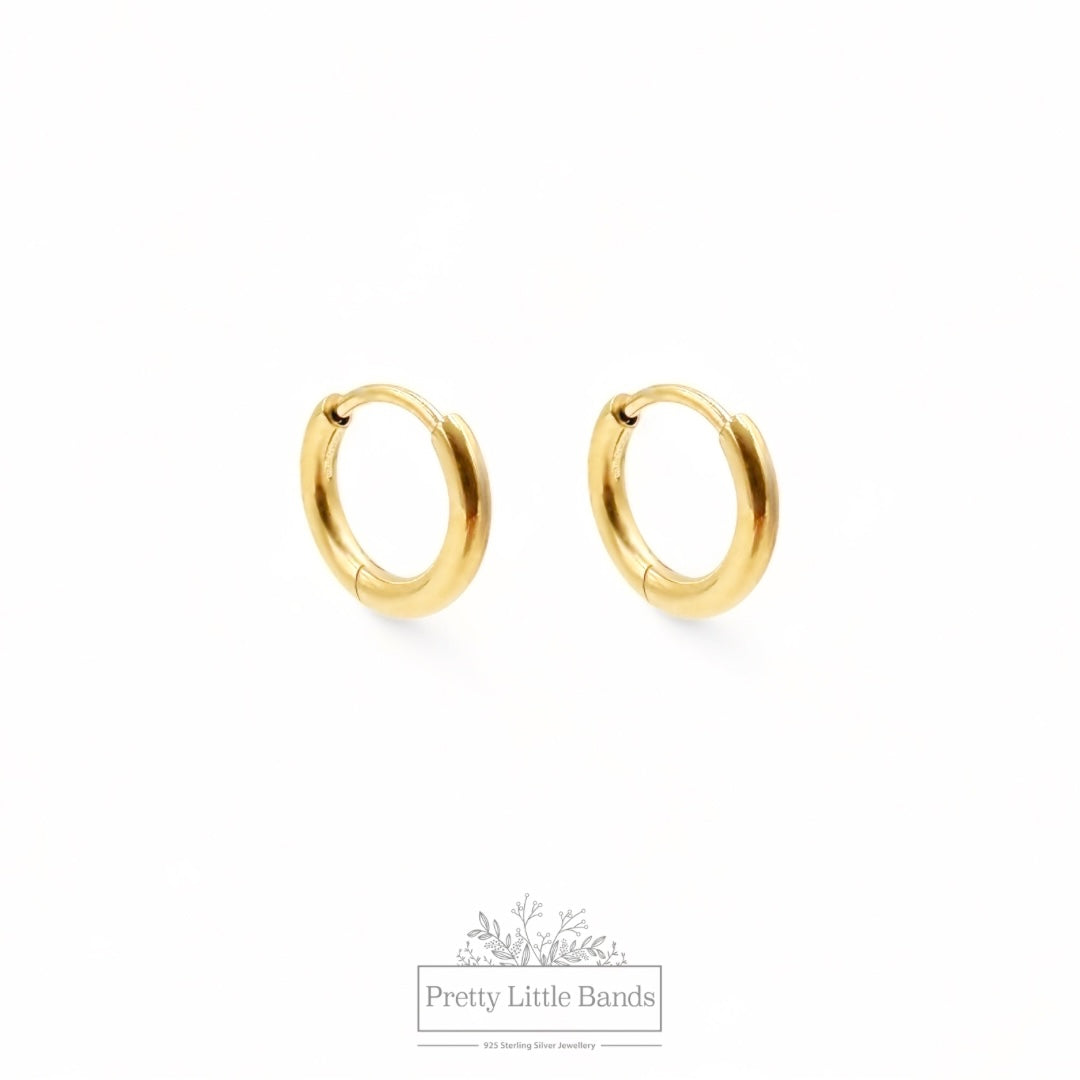 Our 2.5mm wide Everyday Donut Hoop Earrings are crafted from 18k gold filled stainless steel, making them hypoallergenic, waterproof and sweatproof. Our Everyday Donut Hoops feature a bottom hinge-style closure for a secure and comfortable fit.