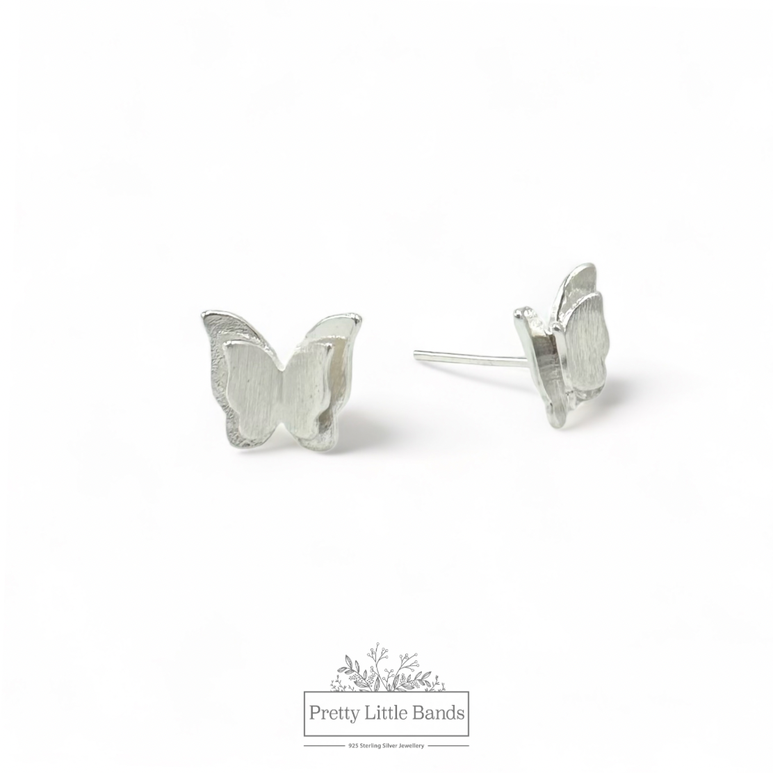 Crafted from 925 Sterling Silver, these adorable earrings feature double winged butterflies and a delicate brushed finish.