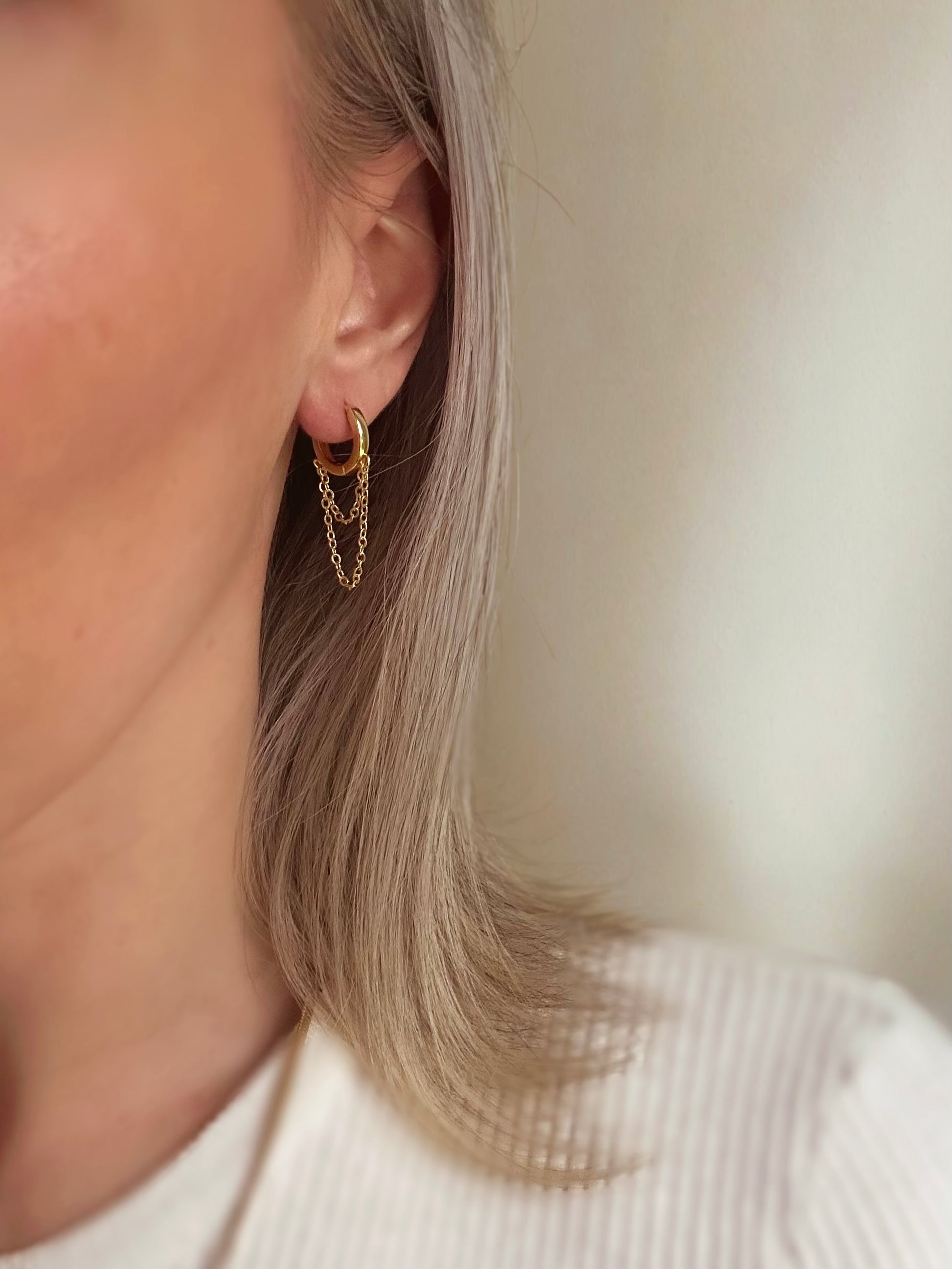 A favourite one everyone’s collection. Our popular Draped Tassel Chain Hoops featuring two subtle and elegant chain tassels on a classic 12mm hoop.