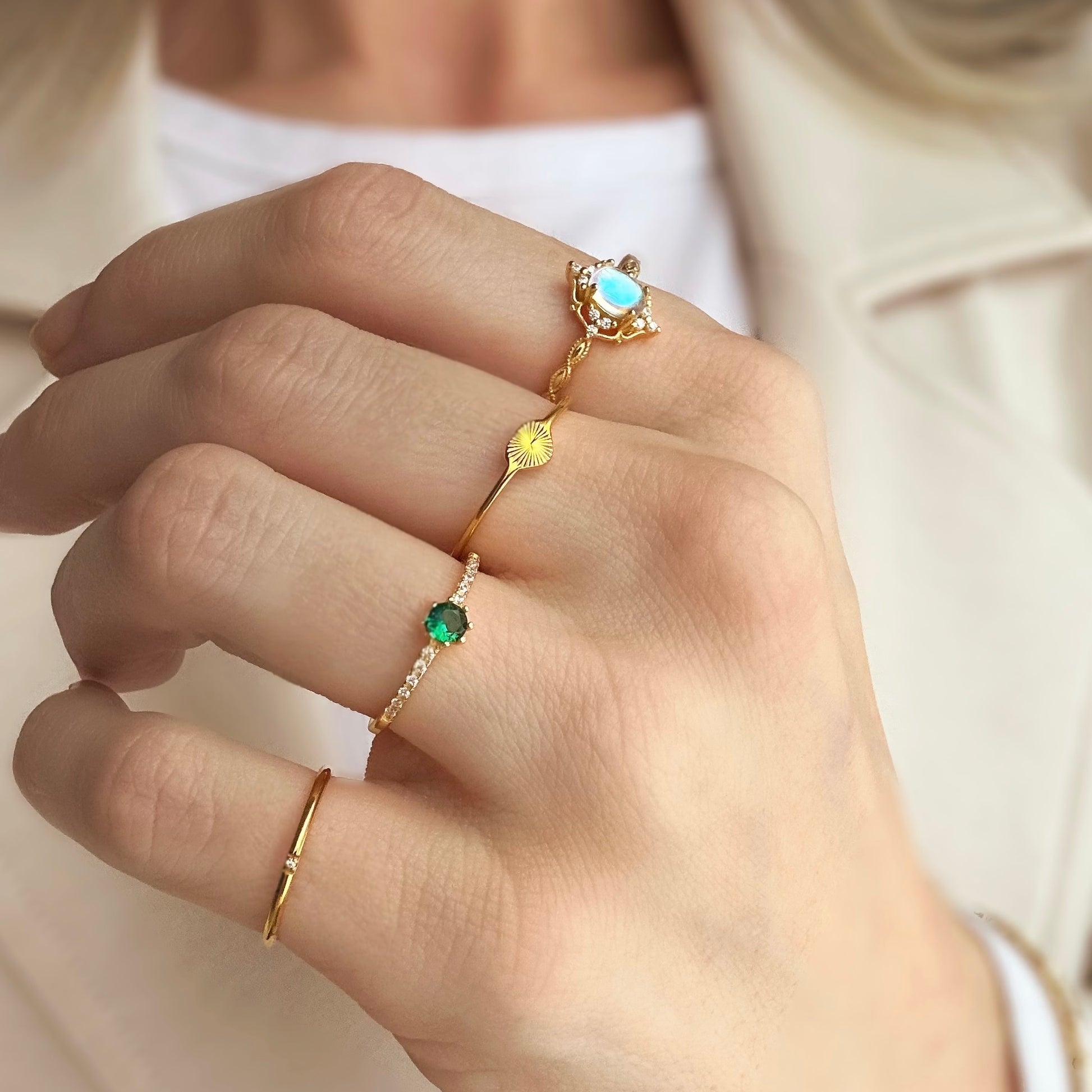 Our Emerald & Crystal Fern Ring is crafted from high quality 925 Sterling Silver and features 14K gold fill.