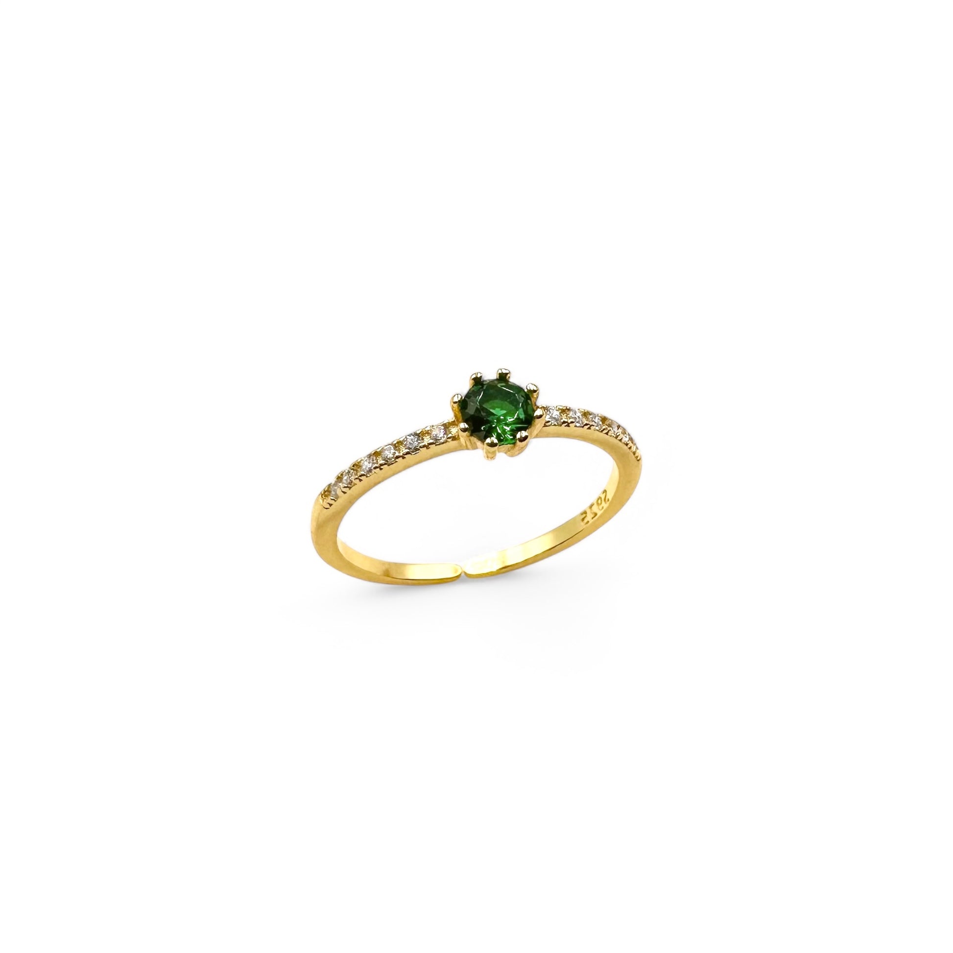 Introducing our beautiful Fern Ring. This elegant ring features a deep green cubic zirconia crystal surrounded by a half band of clear cubic zirconia crystals.