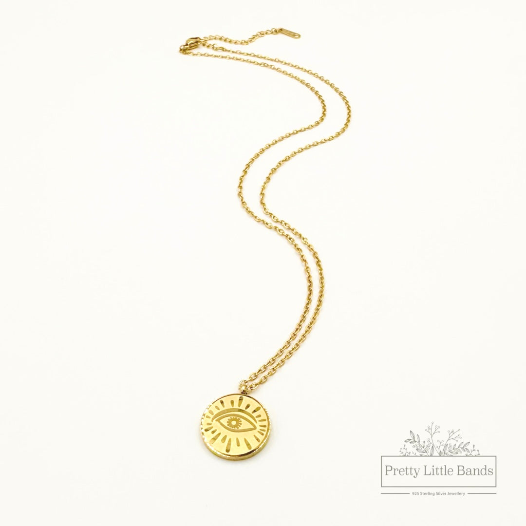 Evil Eye Coin Pendant Necklace | 18k Gold