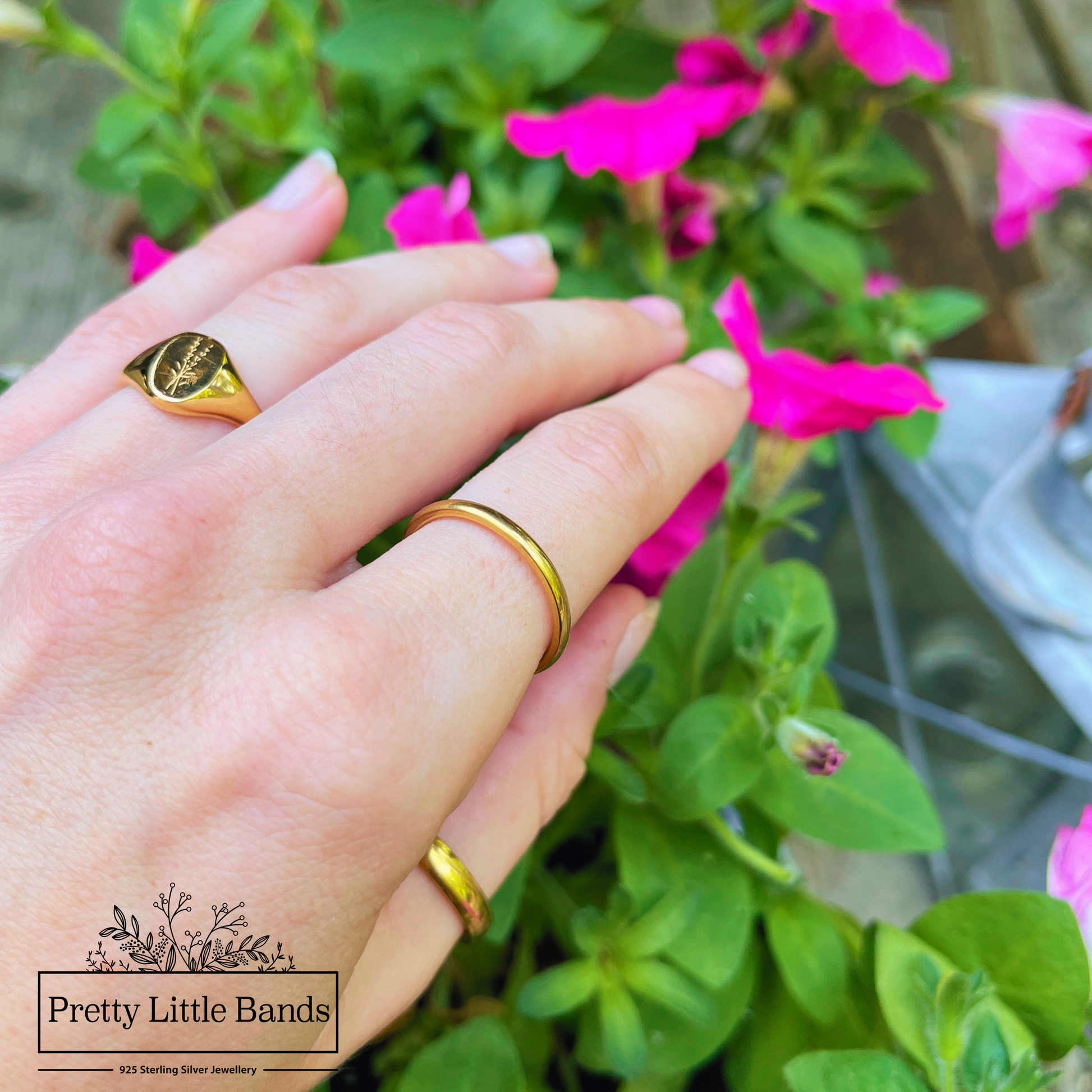 Our popular 3mm Gold Ring is extremely versatile. This 18k gold plated ring looks amazing worn on its own or paired with other gold rings from Pretty Little Bands.