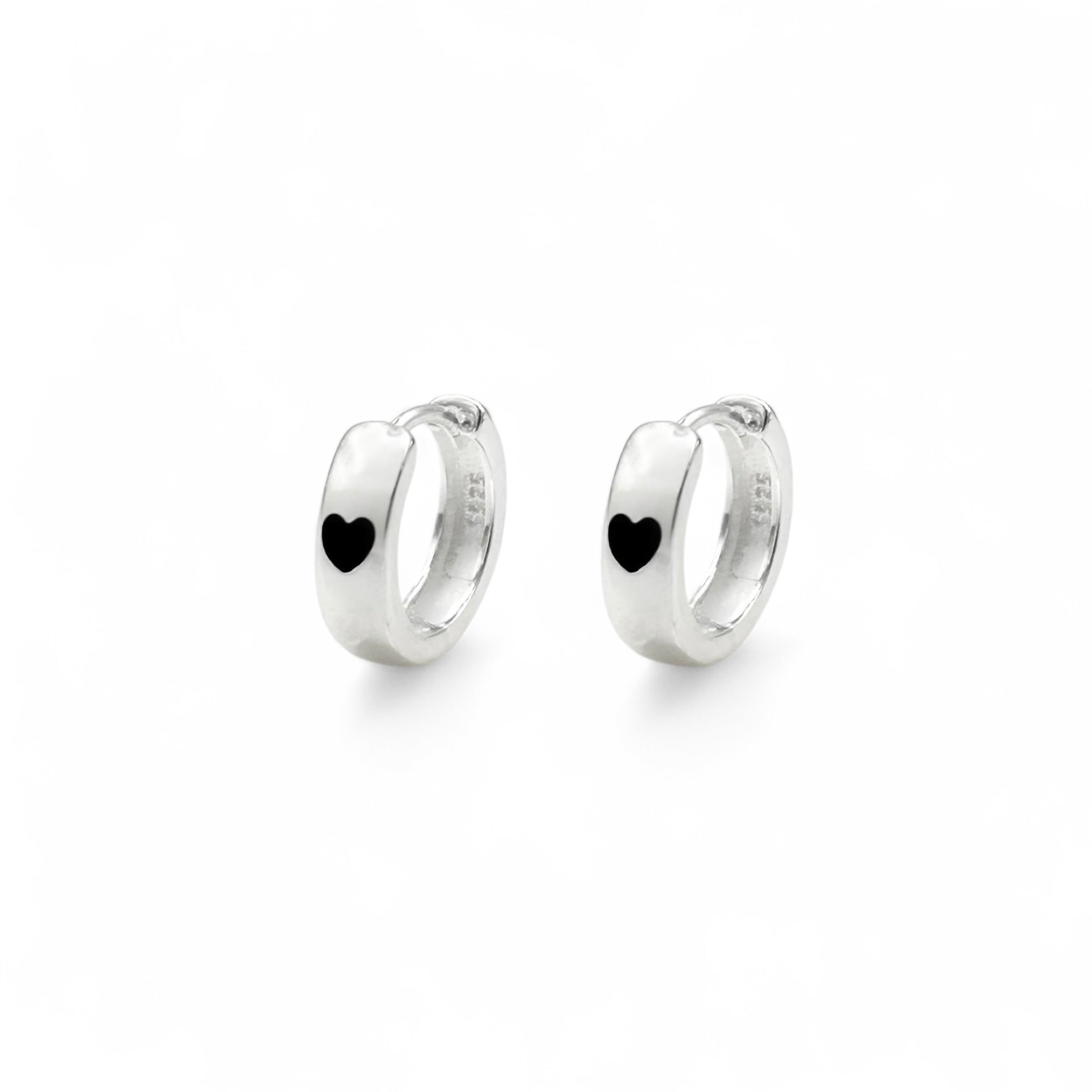 Designed with love! Our new Heart Hoop Earrings feature a comfortable hinhe-style closure and an adorable tiny black heart.
