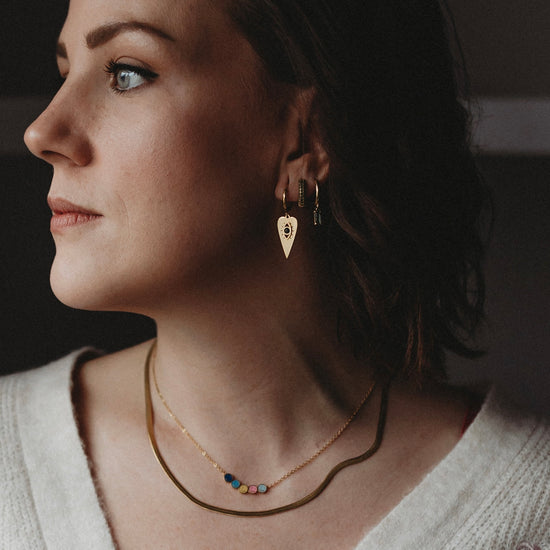 Each pair of earrings in our collection is made from high quality 925 sterling silver or stainless steel, with our gold styles featuring 18k gold fill.