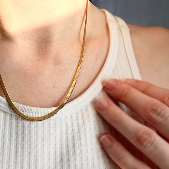 Our classic Herringbone Chain Necklace is the perfect everyday piece. Pair our high polish chain with other necklaces or wear it alone for a simple and elegant everyday look.
