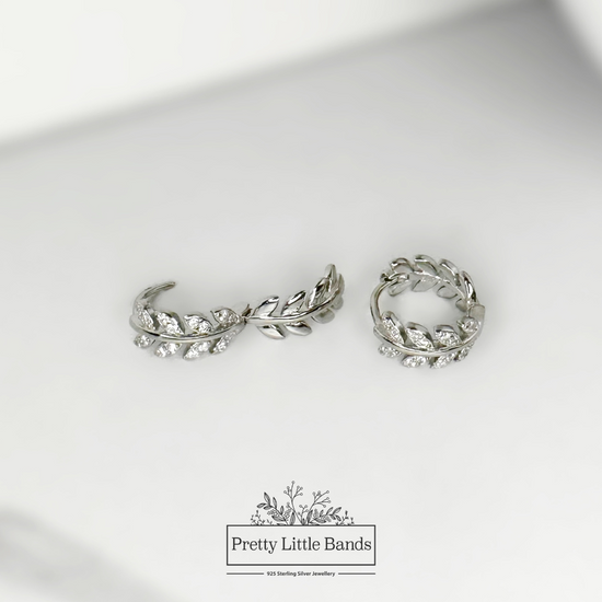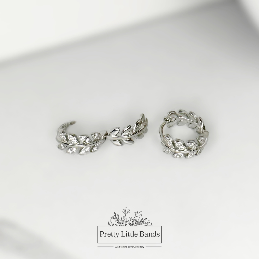 These lightweight and hypoallergenic hoops feature a detailed ivy design and shimmering cubic zirconia crystals.