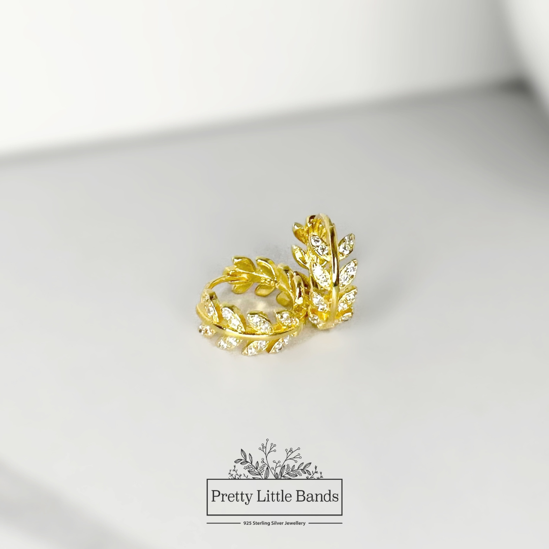 Our Ivy Hoop Earrings are crafted from 925 sterling silver and filled with 18K gold.