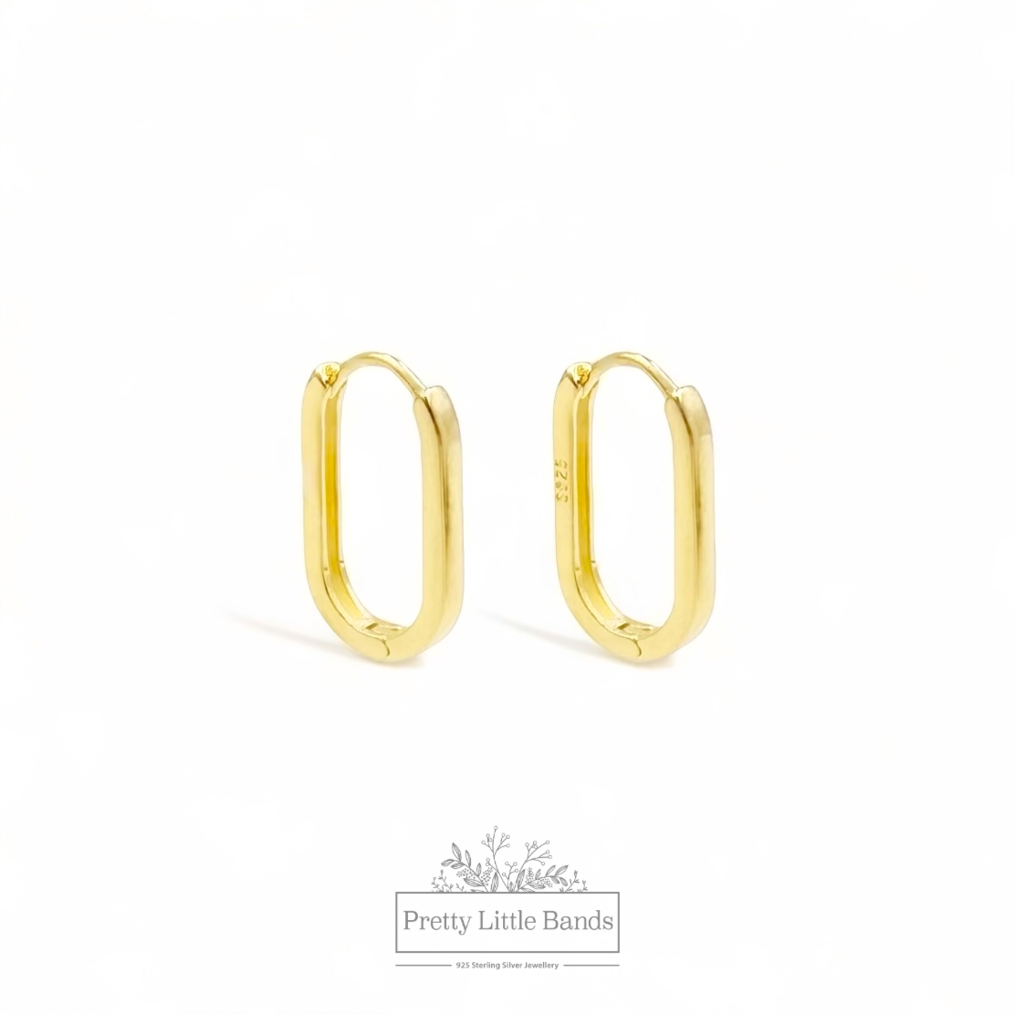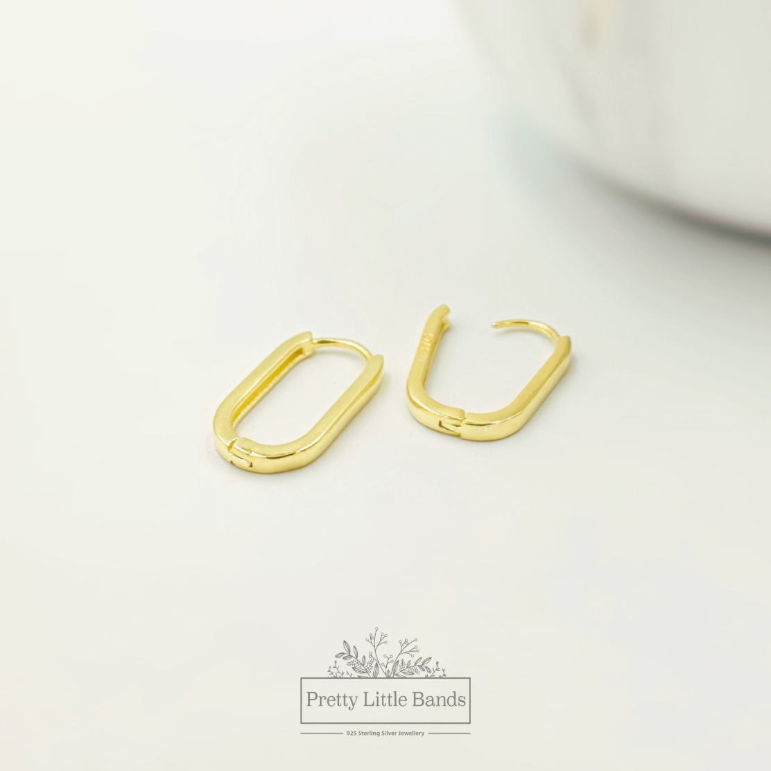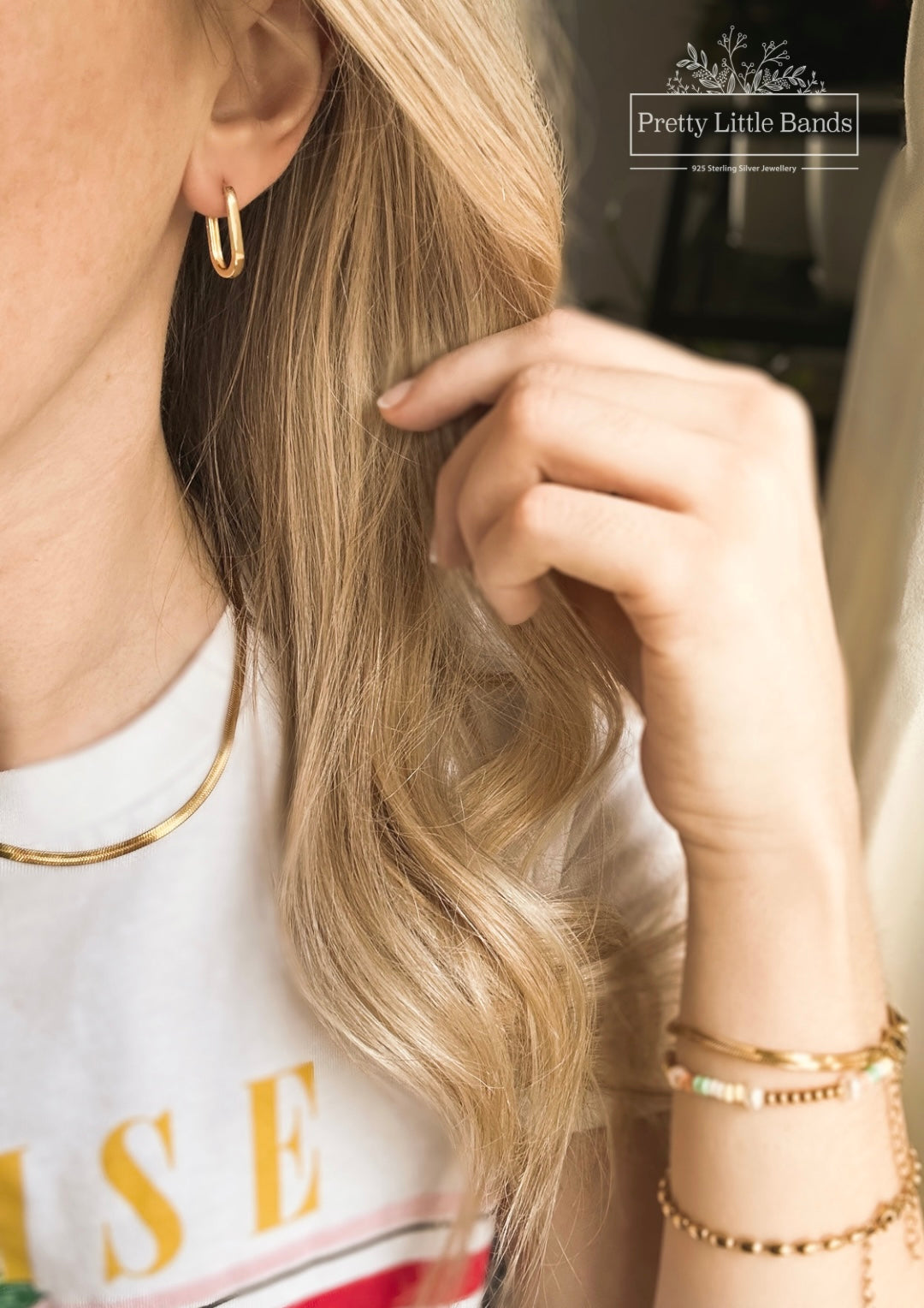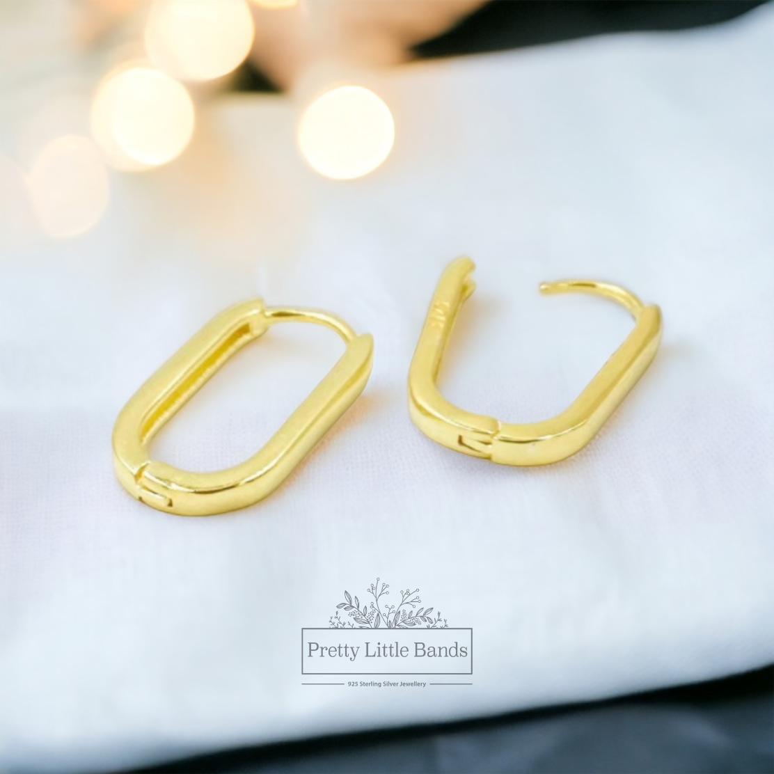 Crafted from 925 Sterling Silver and filled with 18k gold, our elegant Oval/Paperclip Hoop Earrings feature a secure hinge-style closure for a comfortable and secure fit.