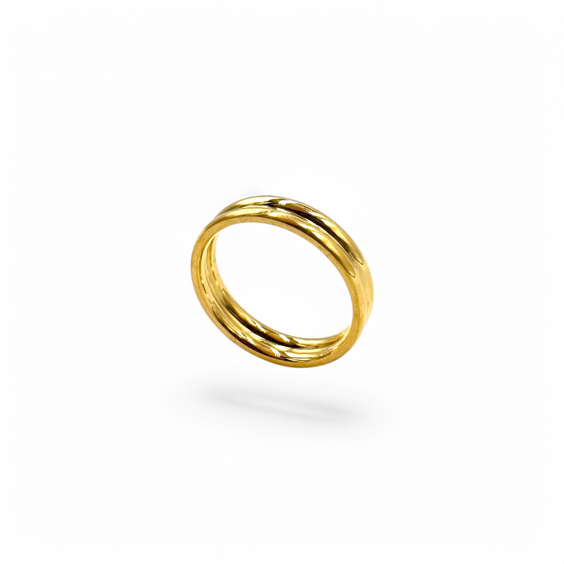 Our Simple Double Band is perfect for stacking and features a super smooth interior. This ring features a durable 18k gold filled finish over stainless steel!