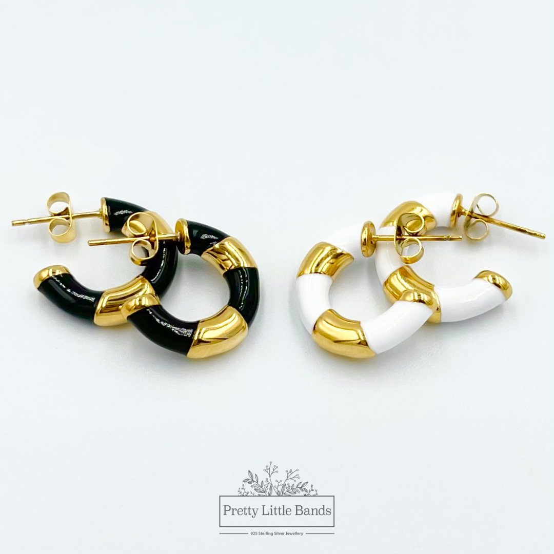 Material: 18k Gold Filled Stainless Steel | Black or White Enamel Coating