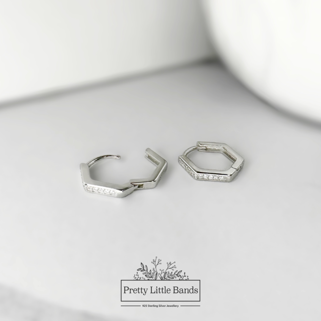 Our stunning Hexagon Hoop Earrings are crafted from 925 sterling silver, enlayed with dazzling cubic zirconia crystals.