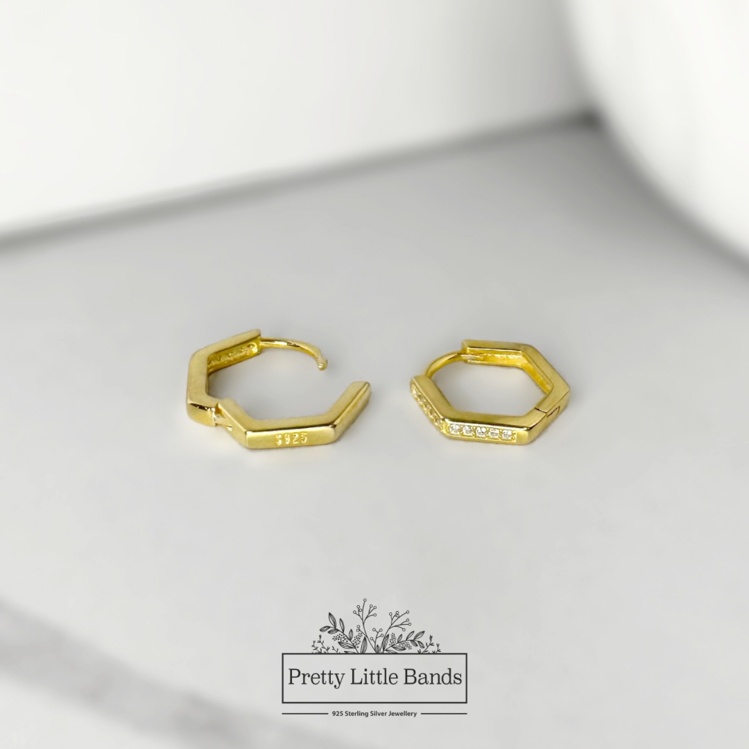 Hexagon Hoop Earrings | Available in Silver & 18k Gold