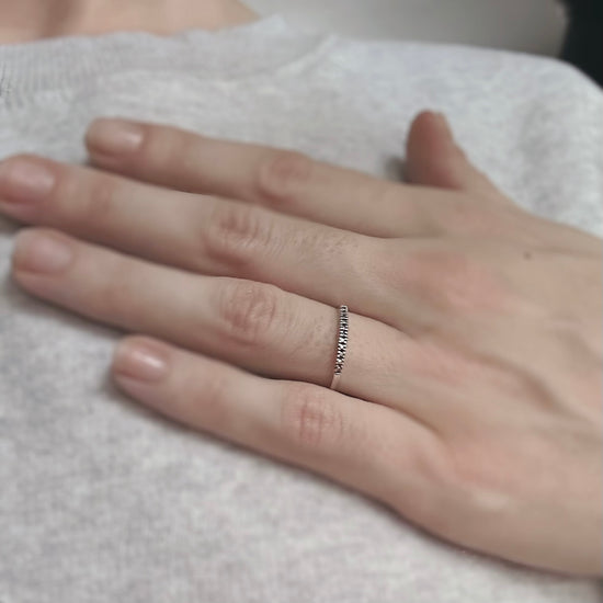 A simple and elegant band featuring silver studs along the top. A great piece for stacking or wearing alone.
