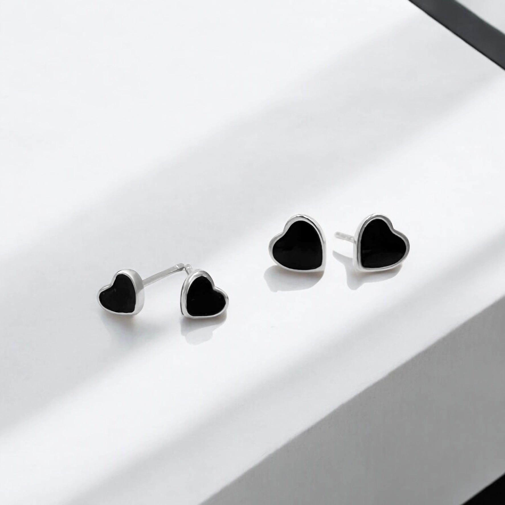 Tiny Black Heart Stud Earrings | 925 Sterling Silver