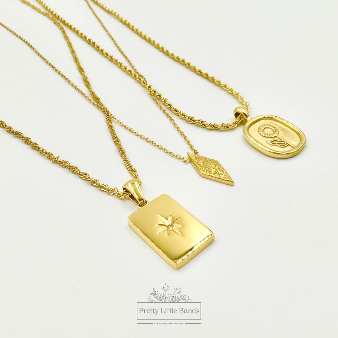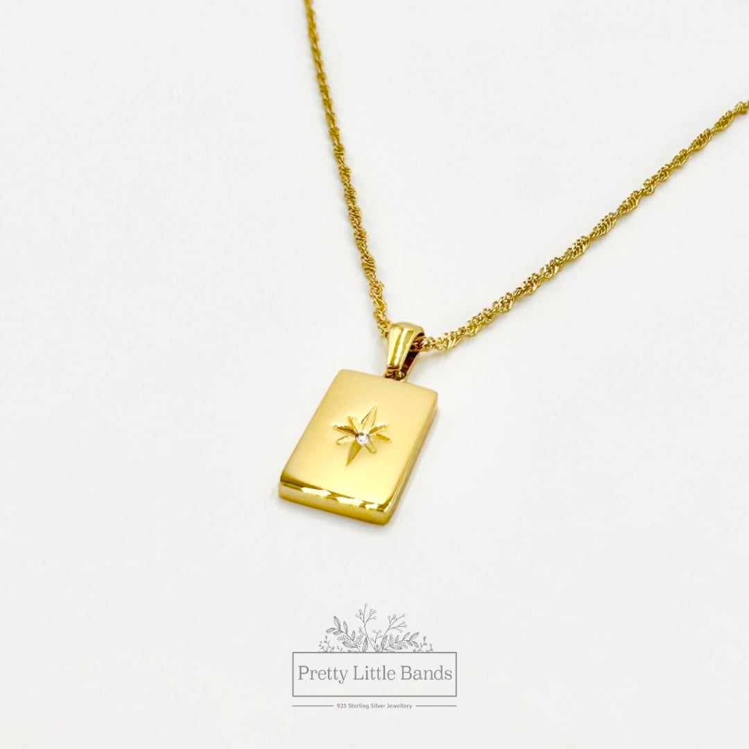 Our Rectangular Talisman Necklace is a masterpiece, crafted for a touch of glam! The 18K gold fill gives it a luxurious look and the cubic zirconia crystal adds a dazzling sparkle. When the light hits the twisted chain, this dazzling necklace shines like now other.
